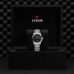 TUDOR 1926 M91350-0004, Luneta giratória unidirecional, Bracelete em titânio ou aço, Caixa de tamanho variável com acabamento acetinado, Bezel com disco em cerâmica e material luminescente, Calibre de Manufatura com certificação COSC ou METAS, Movimento mecânico de corda automática, mostrador com acabamento sunray ou mate, Cristal de safira, estanque até no mínimo 200 metros, Bracelete com fecho TUDOR T-fit, extensões e opções adicionais incluídas na caixa.