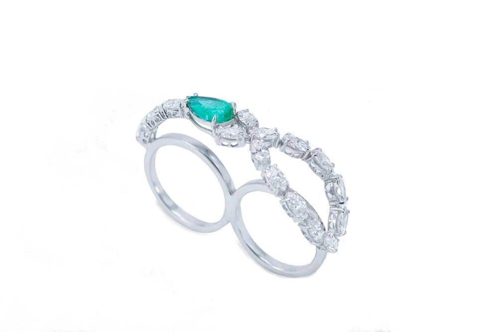 ANEL DUPLO GOTA ESMERALDA COM NAVETTE