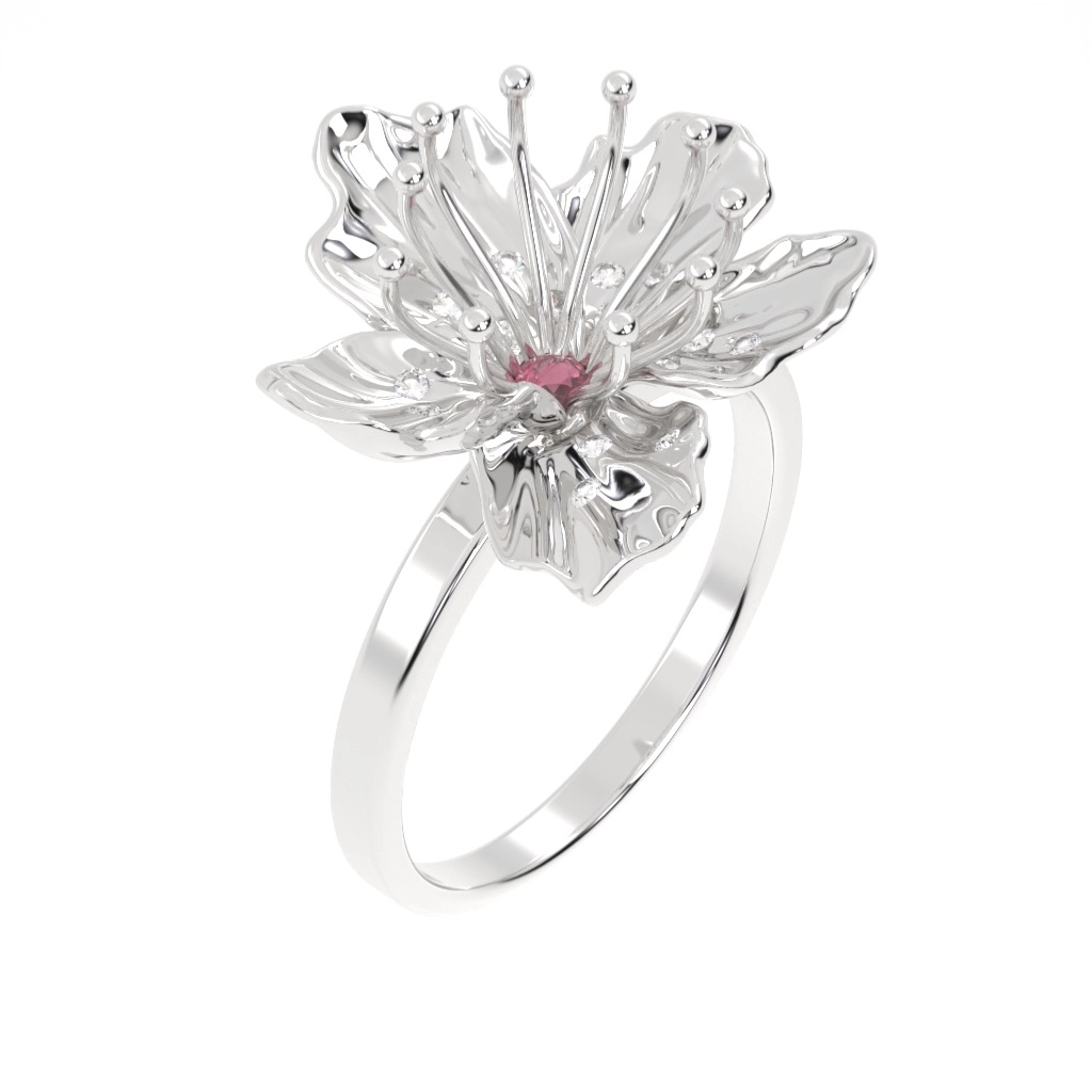 ANEL FLOR DE CEREJEIRA COM RUBI OURO BRANCO