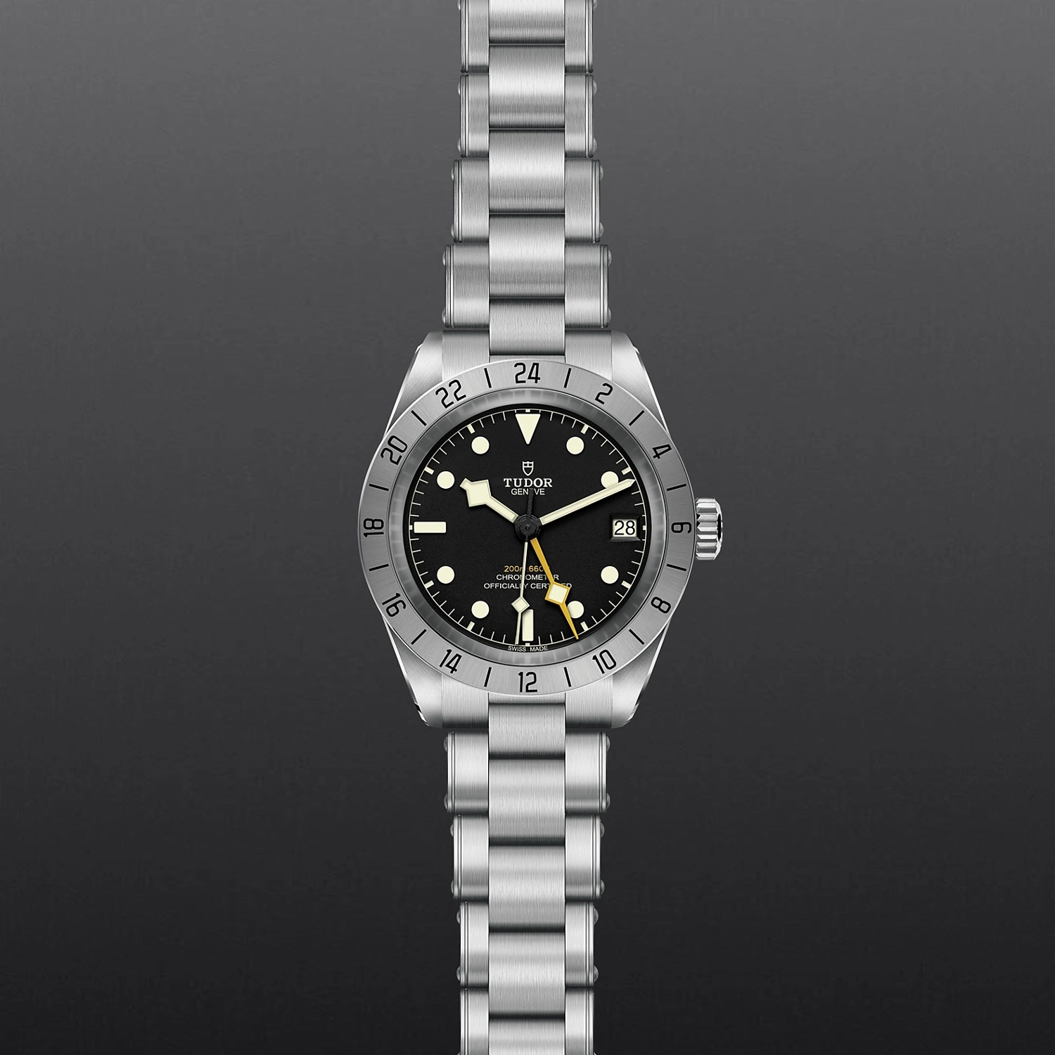 Caixa de 39 mm em aço, Bracelete em aço com rebites, Estojo Caixa de 39 mm em aço com acabamento polido e acetinado, Bezel Luneta fixa graduada de 24 horas em aço com acabamento acetinado e escovado, Calibre de Manufatura MT5652 (COSC) Movimento mecânico de corda automática com sistema de rotor bidirecional Arquitetura integrada, Mostrador Preto, côncavo, Coroa de rosca em aço com a rosa TUDOR em relevo, Cristal Vidro de safira côncavo, Estanque até 200 m, Bracelete em aço com rebites, acabamento polido e acetinado, fecho TUDOR “T-fit” de ajuste rápido, Tamanho Médio, Material Aço, Mostrador escuro.
