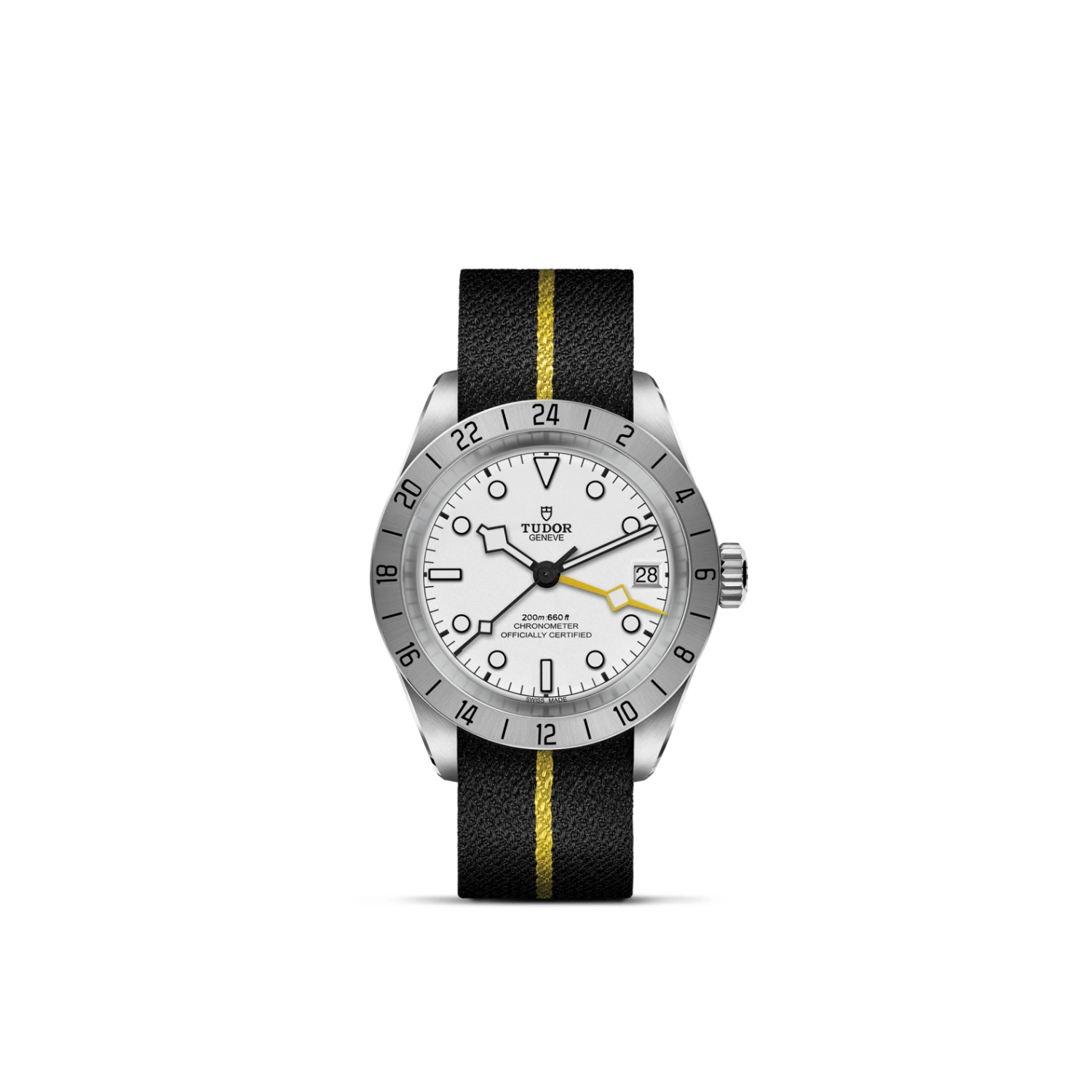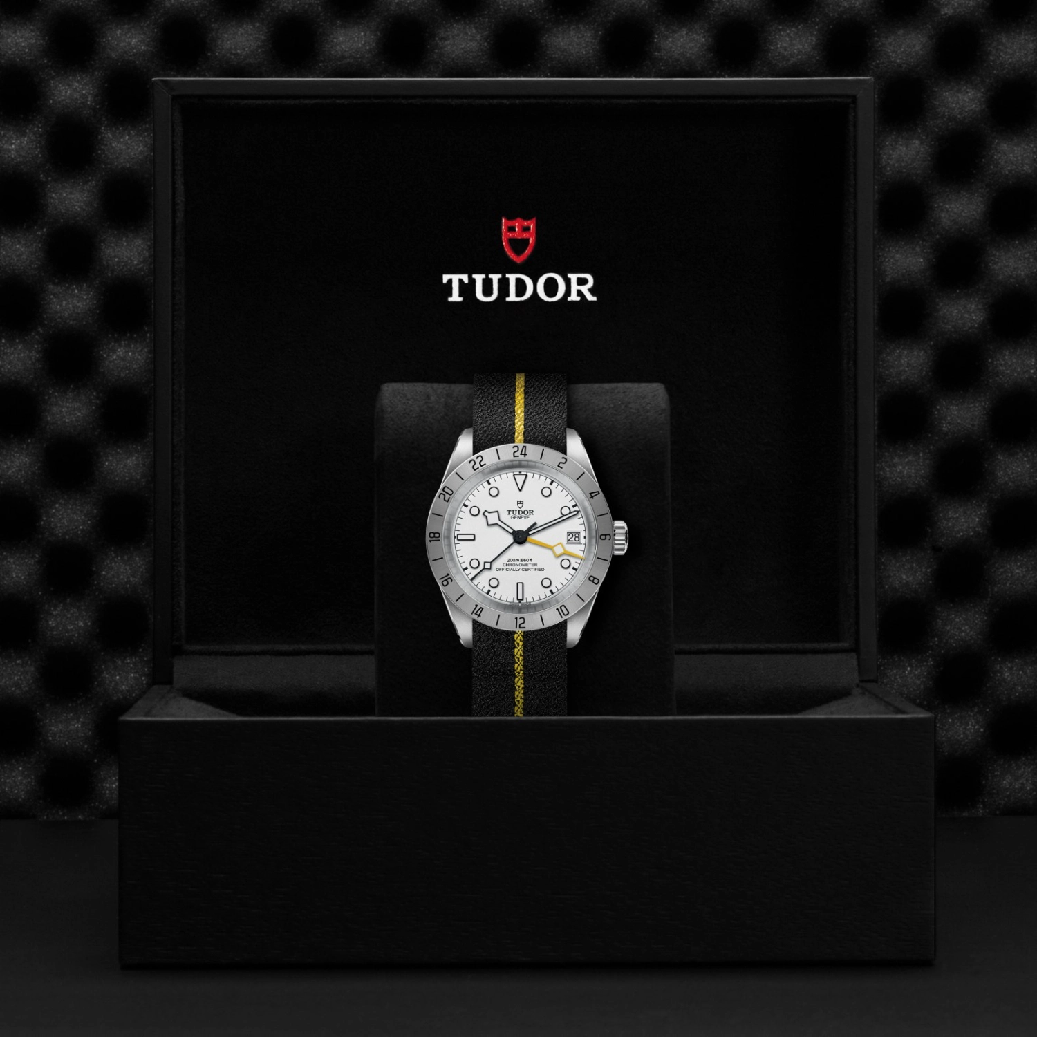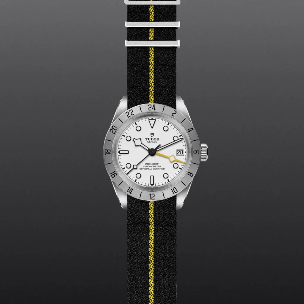 Luneta giratória unidirecional, Bracelete em titânio ou aço, Caixa de tamanho variável com acabamento acetinado, Bezel com disco em cerâmica e material luminescente, Calibre de Manufatura com certificação COSC ou METAS, Movimento mecânico de corda automática, mostrador com acabamento sunray ou mate, Cristal de safira, estanque até no mínimo 200 metros, Bracelete com fecho TUDOR T-fit, extensões e opções adicionais incluídas na caixa.