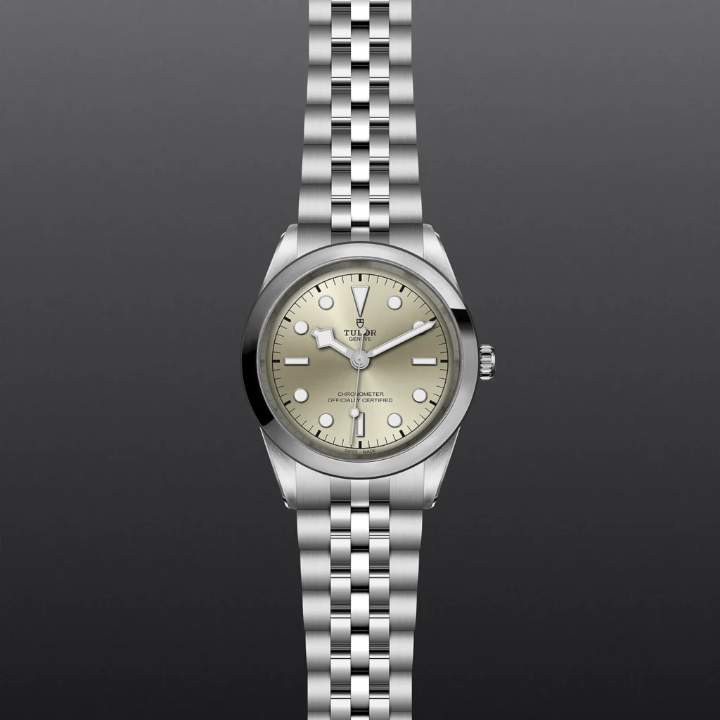 Caixa de 41 mm em aço, Bracelete em aço, Estojo Caixa de 41 mm em aço com acabamento polido e acetinado, Bezel Luneta em aço inoxidável com acabamento polido e acetinado, Calibre de Manufatura MT5601 (COSC) Movimento mecânico de corda automática com sistema de rotor bidirecional, Mostrador Cor champagne claro, Coroa de rosca com a rosa TUDOR em relevo, Cristal Vidro de safira plano, Estanque até 100 m, Bracelete em aço inoxidável, acabamento polido e acetinado, com fecho desdobrável TUDOR “T-fit” e fecho de segurança, Tamanho Grande, Material Aço, Mostrador colorido.
