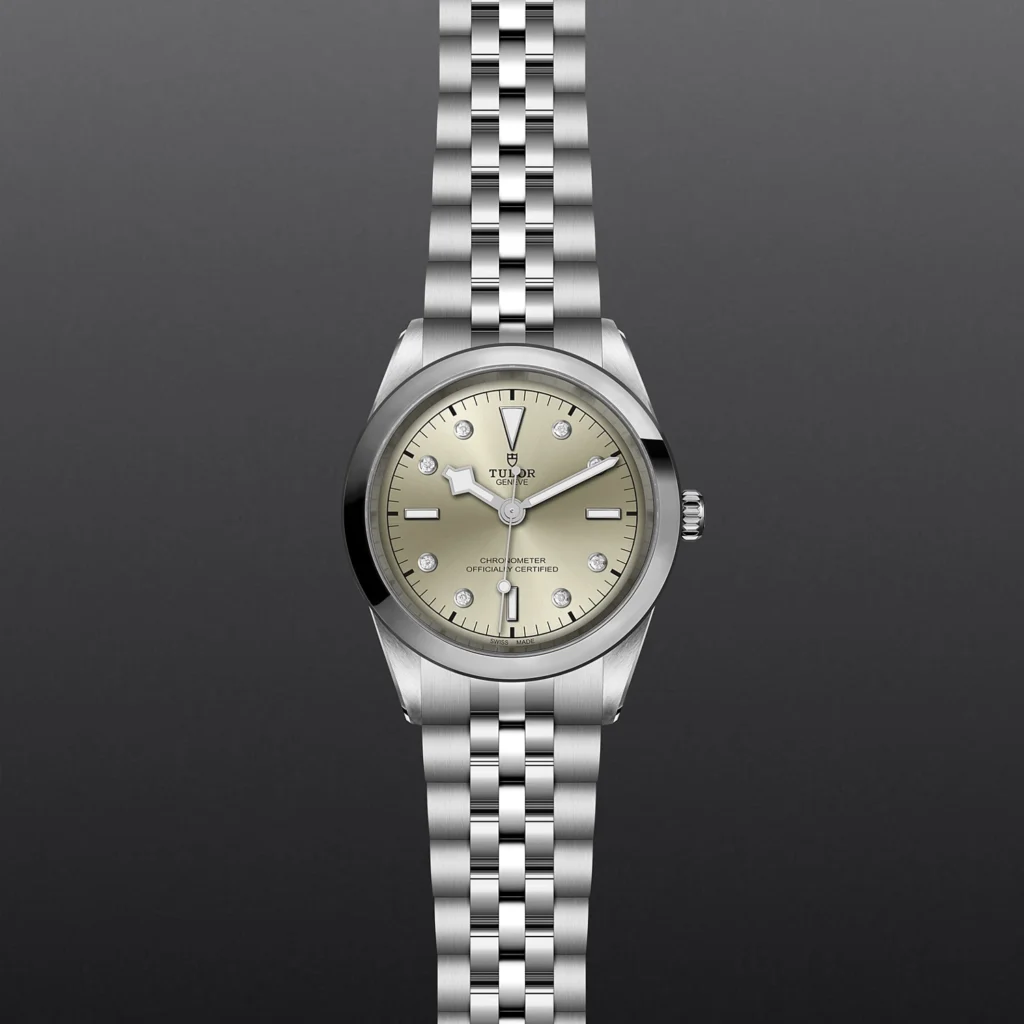 Caixa de 41 mm em aço, Bracelete em aço, Estojo Caixa de 41 mm em aço com acabamento polido e acetinado, Bezel Luneta em aço inoxidável com acabamento polido e acetinado, Calibre de Manufatura MT5601 (COSC) Movimento mecânico de corda automática com sistema de rotor bidirecional, Mostrador Cor champagne claro com 8 diamantes, Coroa de rosca com a rosa TUDOR em relevo, Cristal Vidro de safira plano, Estanque até 100 m, Bracelete em aço inoxidável, acabamento polido e acetinado, com fecho desdobrável TUDOR “T-fit” e fecho de segurança, Tamanho Grande, Material Aço, Mostrador colorido.