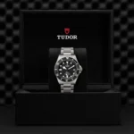 Disco em cerâmica preta mate, Bracelete em titânio, Estojo Caixa de 42 mm em titânio e aço com acabamento acetinado, Bezel Luneta giratória unidirecional em titânio, graduada de 60 minutos com disco em cerâmica preta mate e graduações com material luminescente branco, Calibre de Manufatura MT5612 (COSC) Movimento mecânico de corda automática com sistema de rotor bidirecional, Mostrador Preto com índices brancos, Coroa em titânio com o logótipo TUDOR em relevo Válvula de hélio às 9 horas, Cristal Vidro de safira, Estanque até 500 m, Bracelete em titânio com fecho desdobrável e fecho de segurança em aço com sistema de extensão da bracelete desenvolvido e patenteado pela TUDOR Bracelete adicional em borracha preta com fivela e extensão extra fornecida com o relógio, Tamanho Grande, Material Titânio, Mostrador escuro.