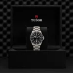 Luneta giratória unidirecional, Bracelete em titânio, Estojo Caixa de 39 mm em titânio de nível 2 com acabamento acetinado, Bezel Luneta giratória unidirecional em titânio de nível 2 com disco em cerâmica com acabamento sunray acetinado e material luminescente, Calibre de Manufatura MT5400 (COSC) Movimento mecânico de corda automática com sistema de rotor bidirecional, Mostrador Preto com acabamento sunray acetinado, réhaut com acabamento areado e marcadores das horas em compósito de cerâmica monobloco luminescente, Coroa de rosca em titânio de nível 2, adornada com o escudo TUDOR em relevo, Cristal Vidro de safira, Estanque até 200 m, Bracelete em titânio com fecho desdobrável TUDOR “T-fit”, fecho de segurança e extensão de mergulho Bracelete adicional em borracha preta com fivela e extensão de mergulho incluída na caixa, Tamanho Médio, Material Titânio, Mostrador escuro.
