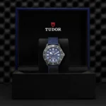 Luneta em titânio com disco em compósito de carbono preto, Bracelete em tecido azul, Estojo Caixa de 42 mm em compósito de carbono preto com acabamento mate e o logótipo Alinghi Red Bull Racing gravado no fundo de caixa, Bezel Luneta bidirecional de 60 minutos em titânio com disco em compósito de carbono preto mate, 120 encaixes, Calibre de Manufatura MT5602 (COSC) Movimento mecânico de corda automática com sistema de rotor bidirecional, Mostrador Azul, mate, Coroa de rosca em titânio com o escudo TUDOR em relevo, Cristal Vidro de safira, Estanque até 200 m, Bracelete em tecido azul de peça única , Tamanho Grande, Material Compósito de carbono, Mostrador colorido.