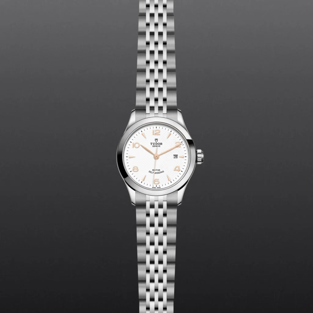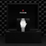 TUDOR 1926 M91350-0011, Luneta giratória unidirecional, Bracelete em titânio ou aço, Caixa de tamanho variável com acabamento acetinado, Bezel com disco em cerâmica e material luminescente, Calibre de Manufatura com certificação COSC ou METAS, Movimento mecânico de corda automática, mostrador com acabamento sunray ou mate, Cristal de safira, estanque até no mínimo 200 metros, Bracelete com fecho TUDOR T-fit, extensões e opções adicionais incluídas na caixa.