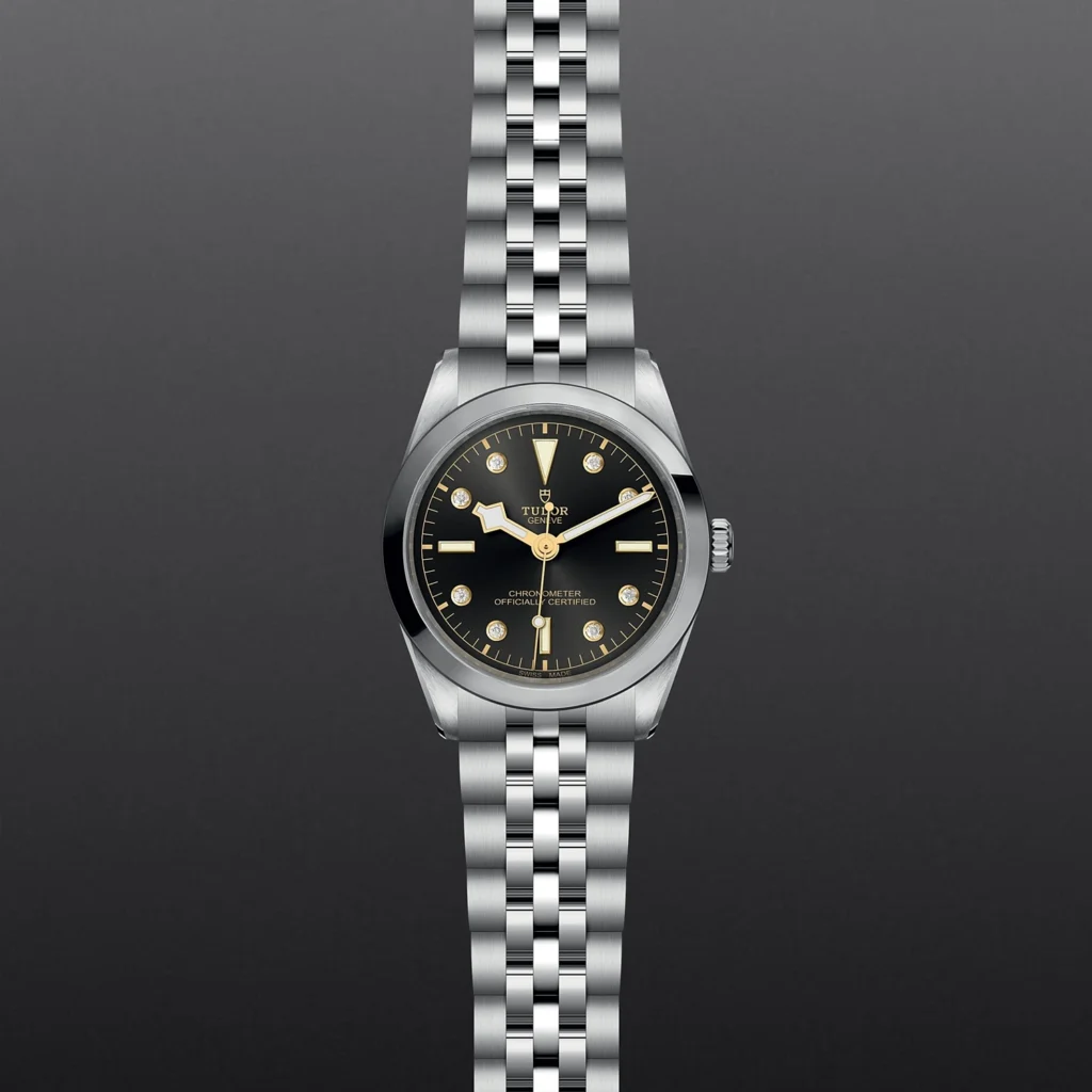 Caixa de 36 mm em aço, Bracelete em aço, Estojo Caixa de 36 mm em aço com acabamento polido e acetinado, Bezel Luneta em aço inoxidável com acabamento polido e acetinado, Calibre de Manufatura MT5400 (COSC) Movimento mecânico de corda automática com sistema de rotor bidirecional, Mostrador Antracite com 8 diamantes, Coroa de rosca com a rosa TUDOR em relevo, Cristal Vidro de safira plano, Estanque até 100 m, Bracelete em aço inoxidável, acabamento polido e acetinado, com fecho desdobrável TUDOR “T-fit” e fecho de segurança, Tamanho Médio, Material Aço, Mostrador claro.