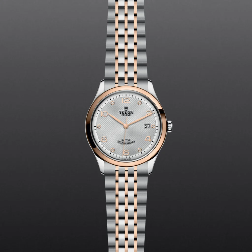 TUDOR 1926 M91551-0002, Luneta giratória unidirecional, Bracelete em titânio ou aço, Caixa de tamanho variável com acabamento acetinado, Bezel com disco em cerâmica e material luminescente, Calibre de Manufatura com certificação COSC ou METAS, Movimento mecânico de corda automática, mostrador com acabamento sunray ou mate, Cristal de safira, estanque até no mínimo 200 metros, Bracelete com fecho TUDOR T-fit, extensões e opções adicionais incluídas na caixa.