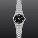 TUDOR Royal M28500-0003, Caixa de 38 mm em aço, Mostrador preto, Estojo Caixa de 38 mm em aço com acabamento polido e acetinado, Bezel Luneta com ranhuras em aço 316L, alternando estrias gravadas com acabamento polido, Movimento mecânico de corda automática, Calibre T601, Mostrador Preto, acabamento sunray, Coroa de rosca em aço com o logótipo TUDOR, Cristal Vidro de safira, Estanque até 100 m, Bracelete incorporada em aço 316L, 5 filas, elos centrais e externos acetinados e escovados, elos intercalados polidos, com fecho desdobrável e fecho de segurança, Tamanho Médio, Material Aço, Mostrador escuro.