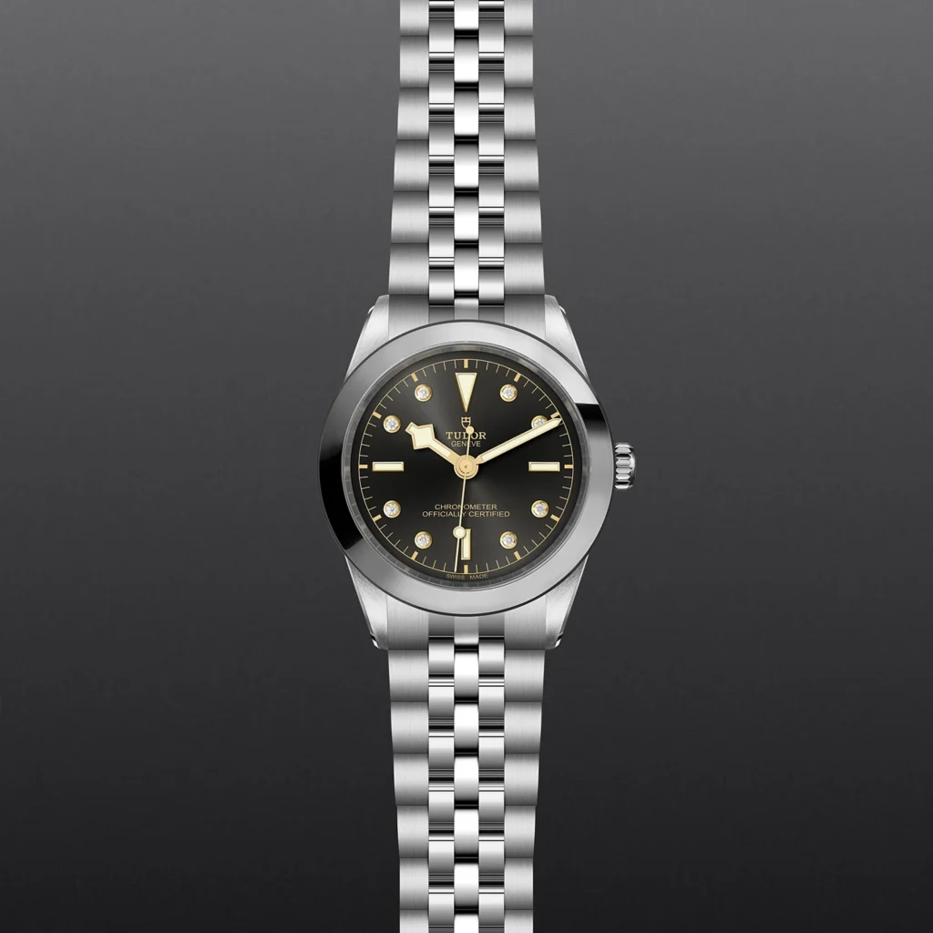 Caixa de 39 mm em aço, Bracelete em aço, Estojo Caixa de 39 mm em aço inoxidável com acabamento polido e acetinado, Bezel Luneta em aço inoxidável com acabamento polido e acetinado, Calibre de Manufatura MT5602 (COSC) Movimento mecânico de corda automática com sistema de rotor bidirecional, Mostrador Antracite com 8 diamantes, Coroa de rosca com a rosa TUDOR em relevo, Cristal Vidro de safira plano, Estanque até 100 m, Bracelete em aço inoxidável, acabamento polido e acetinado, com fecho desdobrável TUDOR “T-fit” e fecho de segurança, Tamanho Médio, Material Aço, Mostrador claro.