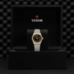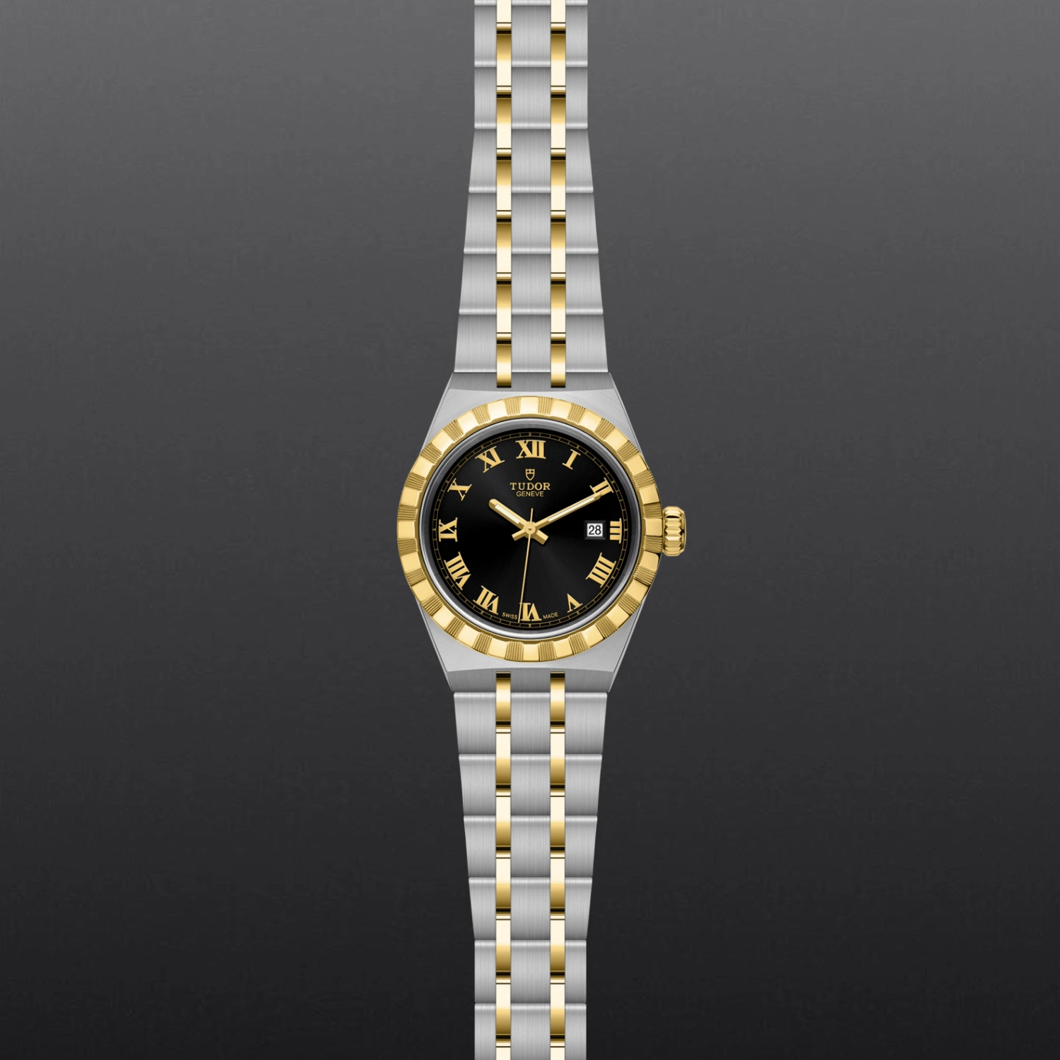 TUDOR Royal M28303-0003, Luneta giratória unidirecional, Bracelete em titânio ou aço, Caixa de tamanho variável com acabamento acetinado, Bezel com disco em cerâmica e material luminescente, Calibre de Manufatura com certificação COSC ou METAS, Movimento mecânico de corda automática, mostrador com acabamento sunray ou mate, Cristal de safira, estanque até no mínimo 200 metros, Bracelete com fecho TUDOR T-fit, extensões e opções adicionais incluídas na caixa.