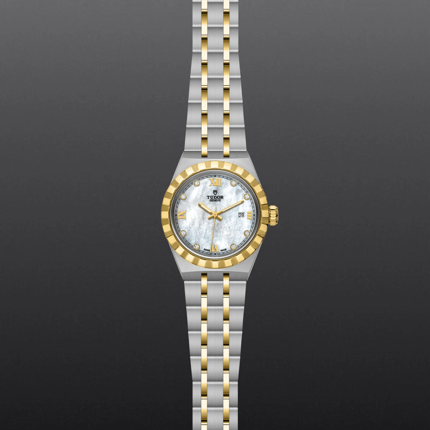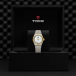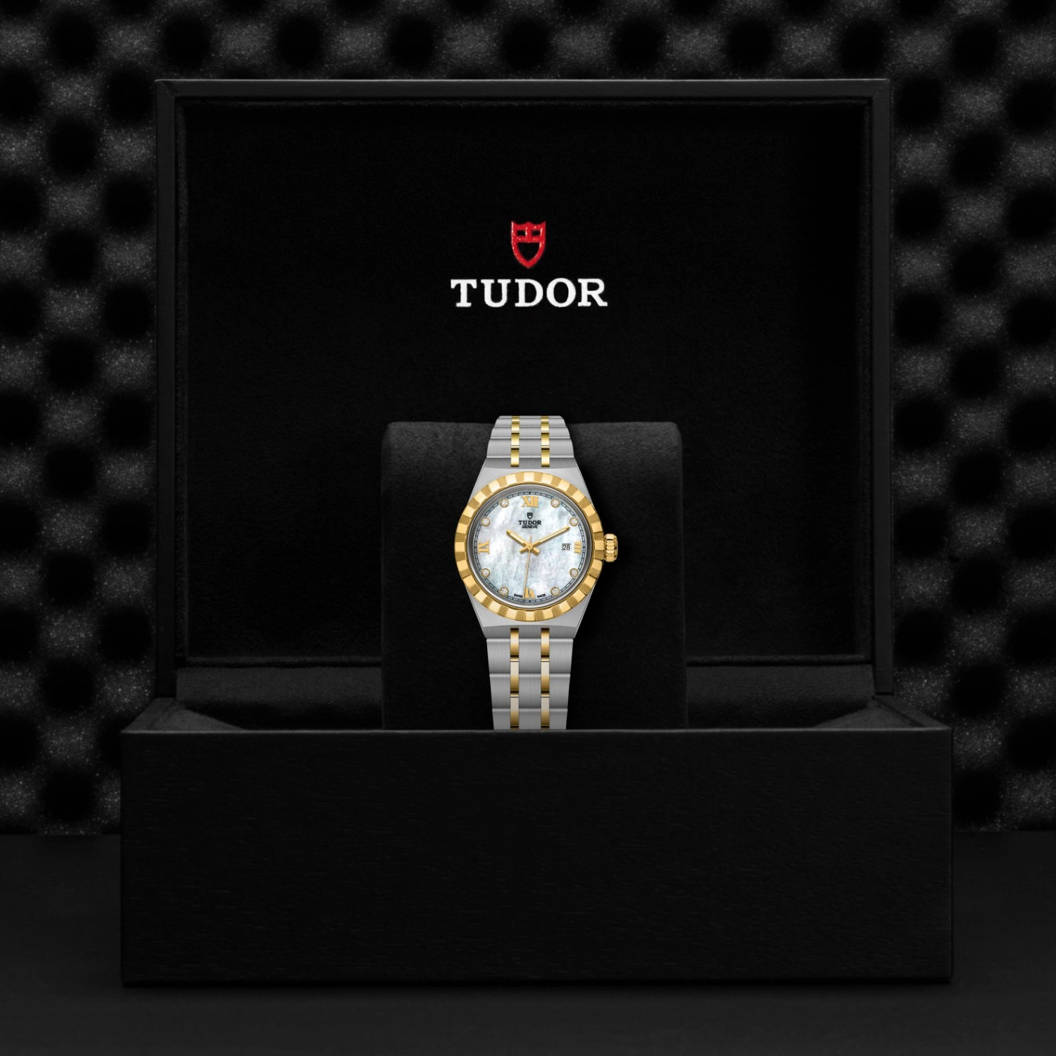 TUDOR Royal M28303-0007, Luneta giratória unidirecional, Bracelete em titânio ou aço, Caixa de tamanho variável com acabamento acetinado, Bezel com disco em cerâmica e material luminescente, Calibre de Manufatura com certificação COSC ou METAS, Movimento mecânico de corda automática, mostrador com acabamento sunray ou mate, Cristal de safira, estanque até no mínimo 200 metros, Bracelete com fecho TUDOR T-fit, extensões e opções adicionais incluídas na caixa.