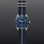 Black Bay 58 M79030B-0003, Caixa de 39 mm em aço, Bracelete em tecido azul, Estojo Caixa de 39 mm em aço com acabamento polido e acetinado, Bezel Luneta giratória unidirecional em aço com disco graduado de 60 minutos em alumínio anodizado azul mate, marcas e algarismos prateados, Calibre de Manufatura MT5402 (COSC) Movimento mecânico de corda automática com sistema de rotor bidirecional, Mostrador Azul, côncavo, Coroa de rosca em aço com a rosa TUDOR em relevo, tubo da coroa em aço escovado com acabamento circular, escovado e acetinado, Cristal Vidro de safira côncavo, Estanque até 200 m, Bracelete em tecido azul com fivela, Tamanho Médio, Material Aço, Mostrador colorido.
