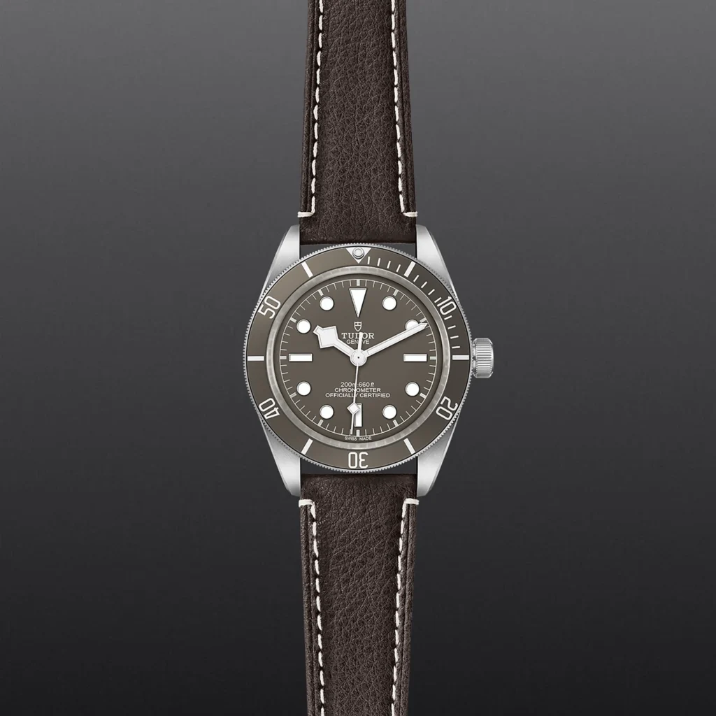Black Bay 58 925 M79010SG-0001, Caixa de 39 mm em prata, Bracelete em pele castanha, Estojo Caixa de 39 mm em prata 925, acabamento acetinado Fundo de caixa aberto com vidro de safira, Bezel Luneta giratória unidirecional em prata 925 com disco graduado de 60 minutos em alumínio anodizado castanho taupe mate, marcas e algarismos prateados, Calibre de Manufatura MT5400 (COSC) Movimento mecânico de corda automática com sistema de rotor bidirecional, Mostrador Castanho, côncavo, Coroa de rosca em prata 925 com a rosa TUDOR em relevo, tubo da coroa de rosca em prata 925 com acabamento circular e acetinado, Cristal Vidro de safira côncavo, Estanque até 200 m, Bracelete em pele castanha com fivela em prata 925, Tamanho Médio, Material Prata, Mostrador claro.