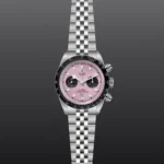 Black Bay Chrono M79360N-0019, Caixa de 41 mm em aço, Mostrador rosa, Estojo Caixa de 41 mm em aço inoxidável 316L com acabamento polido e acetinado, Bezel Luneta fixa em aço 316L com disco em alumínio anodizado preto mate com escala taquimétrica e marcas prateadas, Calibre de Manufatura MT5813 com função de cronógrafo Movimento de cronógrafo mecânico de corda automática com sistema de rotor bidirecional, Mostrador Rosa com contadores pretos, côncavo, Coroa de rosca em aço 316L, com a rosa TUDOR em relevo Botões de rosca em aço inoxidável 316L na posição das 2 e 4 horas, Cristal Vidro de safira côncavo, Estanque até 200 m, Bracelete com cinco elos em aço inoxidável 316L, acabamento polido e acetinado, com fecho TUDOR “T-fit” de ajuste rápido, Tamanho Grande, Material Aço, Mostrador colorido.