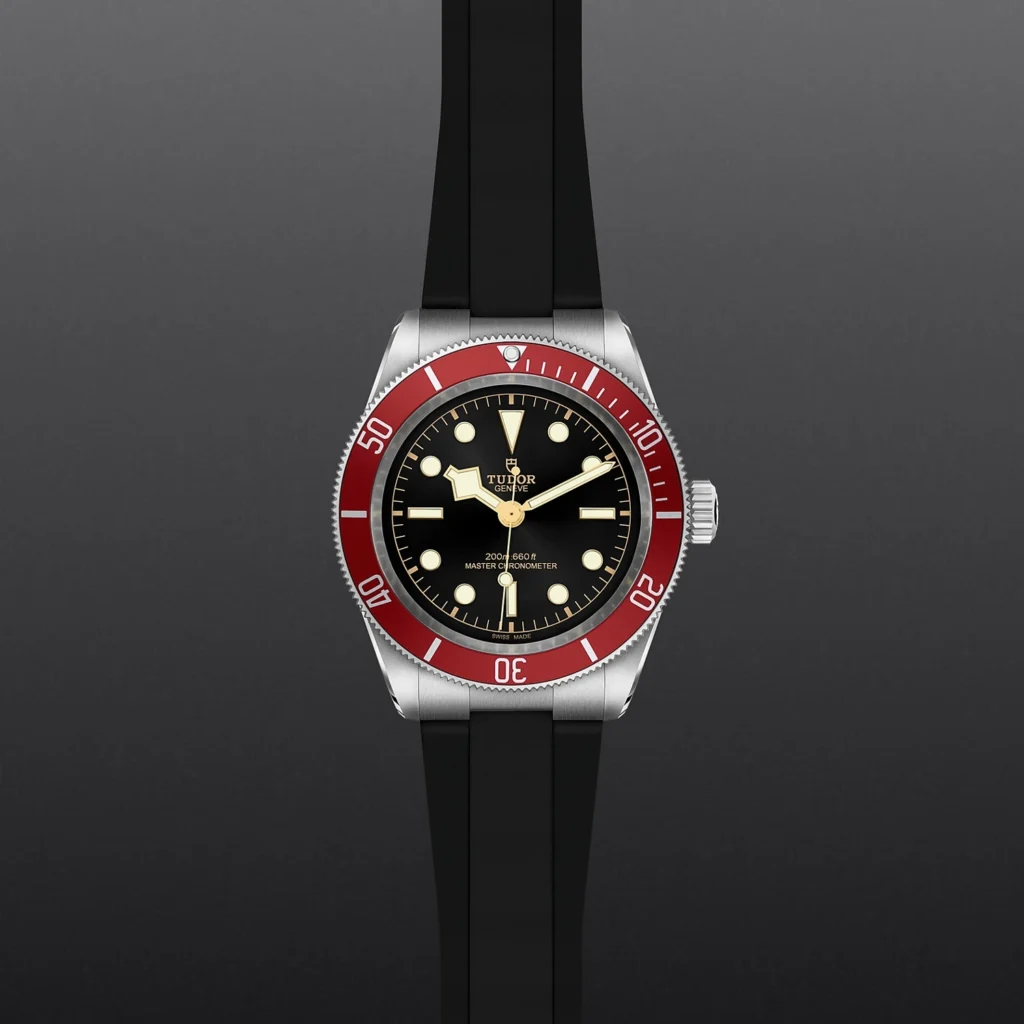 Black Bay M7941A1A0RU-0002, Caixa de 41 mm em aço, Bracelete em borracha preta, Estojo Caixa de 41 mm em aço inoxidável com acabamento polido e acetinado, Bezel Luneta unidirecional graduada de 60 minutos em aço inoxidável com disco em alumínio , Calibre de Manufatura MT5602-U Movimento mecânico de corda automática com sistema de rotor bidirecional, Mostrador Preto, côncavo, Coroa de rosca em aço inoxidável com a rosa TUDOR em relevo, Cristal Vidro de safira côncavo, Estanque até 200 m, Bracelete em borracha com fecho TUDOR “T-fit”, Tamanho Grande, Material Aço, Mostrador escuro.