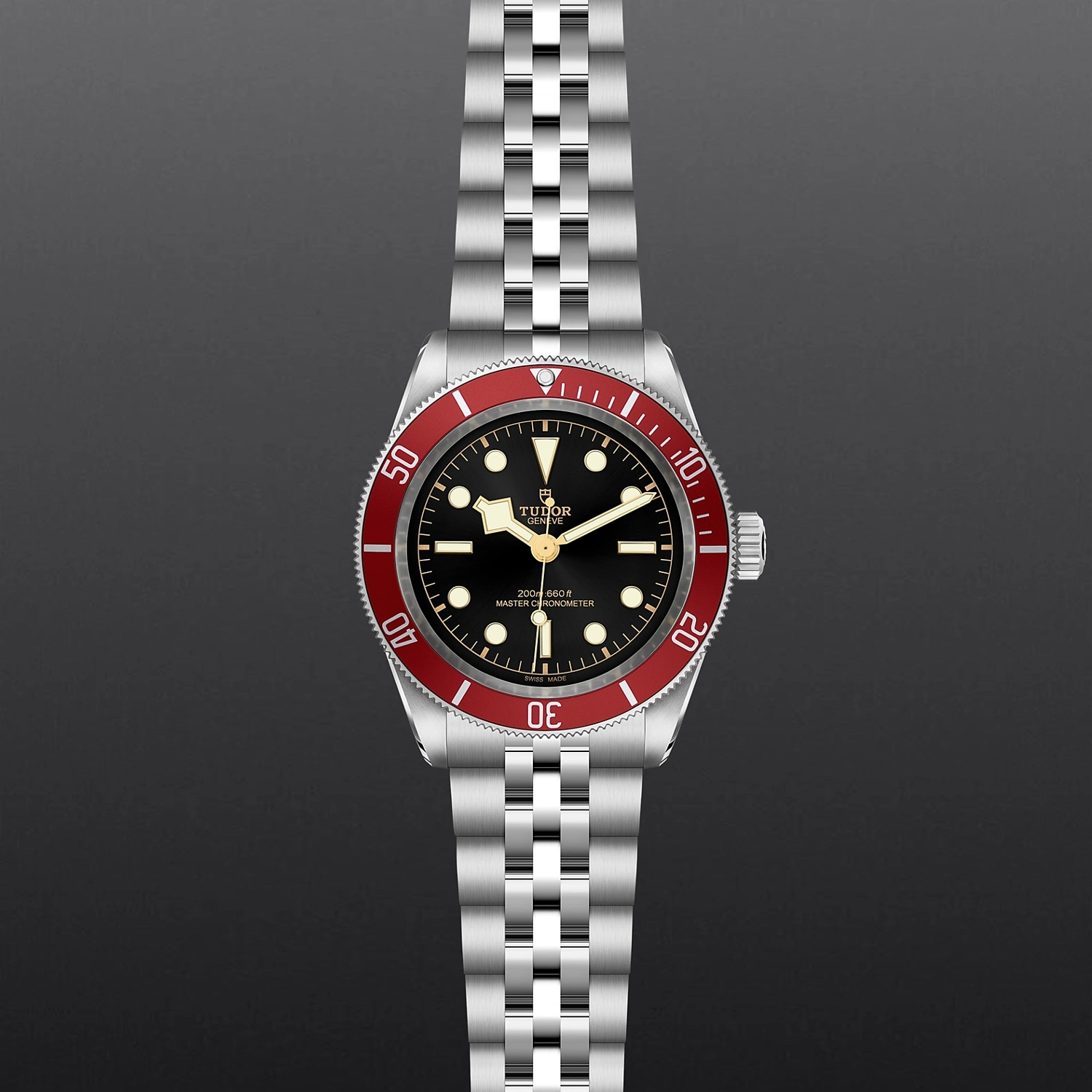 Caixa de 41 mm em aço, Bracelete em aço, Estojo Caixa de 41 mm em aço inoxidável com acabamento polido e acetinado, Bezel Luneta unidirecional graduada de 60 minutos em aço inoxidável com disco em alumínio , Calibre de Manufatura MT5602-U Movimento mecânico de corda automática com sistema de rotor bidirecional, Mostrador Preto, côncavo, Coroa de rosca em aço inoxidável com a rosa TUDOR em relevo, Cristal Vidro de safira côncavo, Estanque até 200 m, Bracelete em aço inoxidável com cinco elos, acabamento polido e acetinado, com fecho TUDOR “T-fit” , Tamanho Grande, Material Aço, Mostrador escuro.