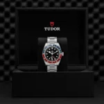 Caixa de 41 mm em aço, Bracelete em aço com rebites, Estojo Caixa de 41 mm em aço com acabamento polido e acetinado, Bezel Luneta giratória bidirecional em aço com 48 encaixes, disco de alumínio anodizado graduado de 24 horas em bordeaux e azul mate, Calibre de Manufatura MT5652 (COSC) Movimento mecânico de corda automática com sistema de rotor bidirecional Arquitetura integrada, Mostrador Preto, côncavo, Coroa de rosca em aço com a rosa TUDOR em relevo, tubo da coroa em aço escovado com acabamento circular, escovado e acetinado, Cristal Vidro de safira côncavo, Estanque até 200 m, Bracelete em aço com rebites com acabamento polido e acetinado, fecho desdobrável e fecho de segurança, Tamanho Grande, Material Aço, Mostrador escuro.