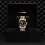 Black Bay One 41 S&G M79683-0001, Luneta giratória unidirecional, Bracelete em titânio ou aço, Caixa de tamanho variável com acabamento acetinado, Bezel com disco em cerâmica e material luminescente, Calibre de Manufatura com certificação COSC ou METAS, Movimento mecânico de corda automática, mostrador com acabamento sunray ou mate, Cristal de safira, estanque até no mínimo 200 metros, Bracelete com fecho TUDOR T-fit, extensões e opções adicionais incluídas na caixa.